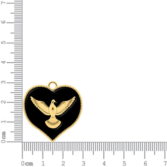 30mm Black Heart Holy Spirit Dove Charm