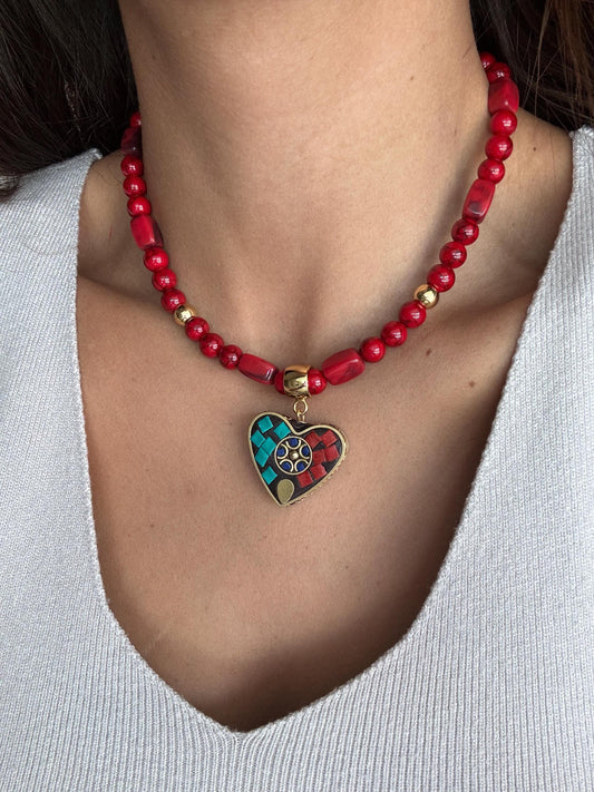 Red Mosaic Heart Necklace