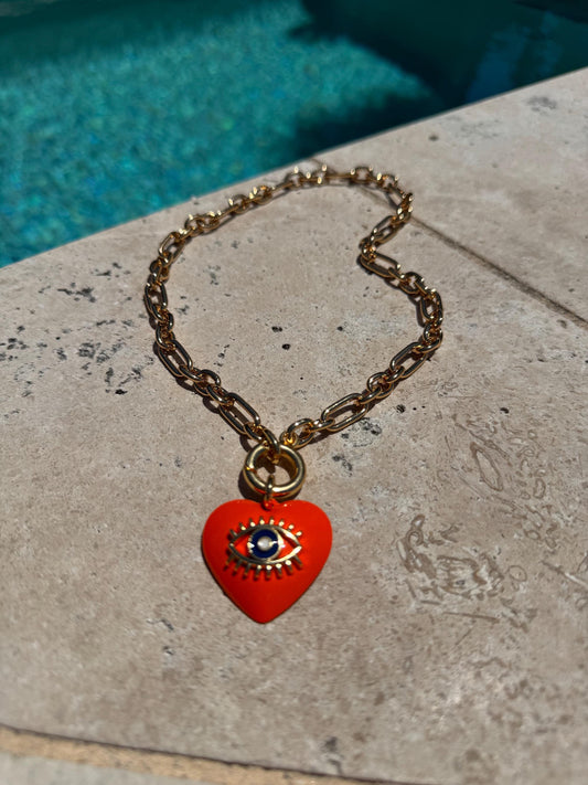 18" Orange Evil Eye Charm Necklace